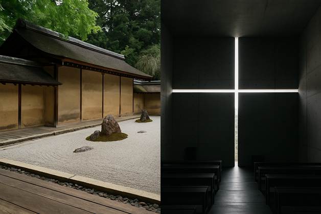 Then modernism arrived. And instead of erasing tradition, architects like Tadao Ando carried it forward in a different material. His exposed concrete walls aren’t turning away from the past, they’re speaking the same language, only in a new accent. The stillness, the silence, the play of natural light, it’s all still there, only translated into something modern.